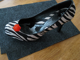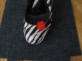 Okay be prepared. What you see below if my FAVORITE pair of shoes. I mean they are zebra I <3 them! I really didn't think they could be improved upon but look! Aren't they stinkin' adorable with the Red Rose Shoe Clip?